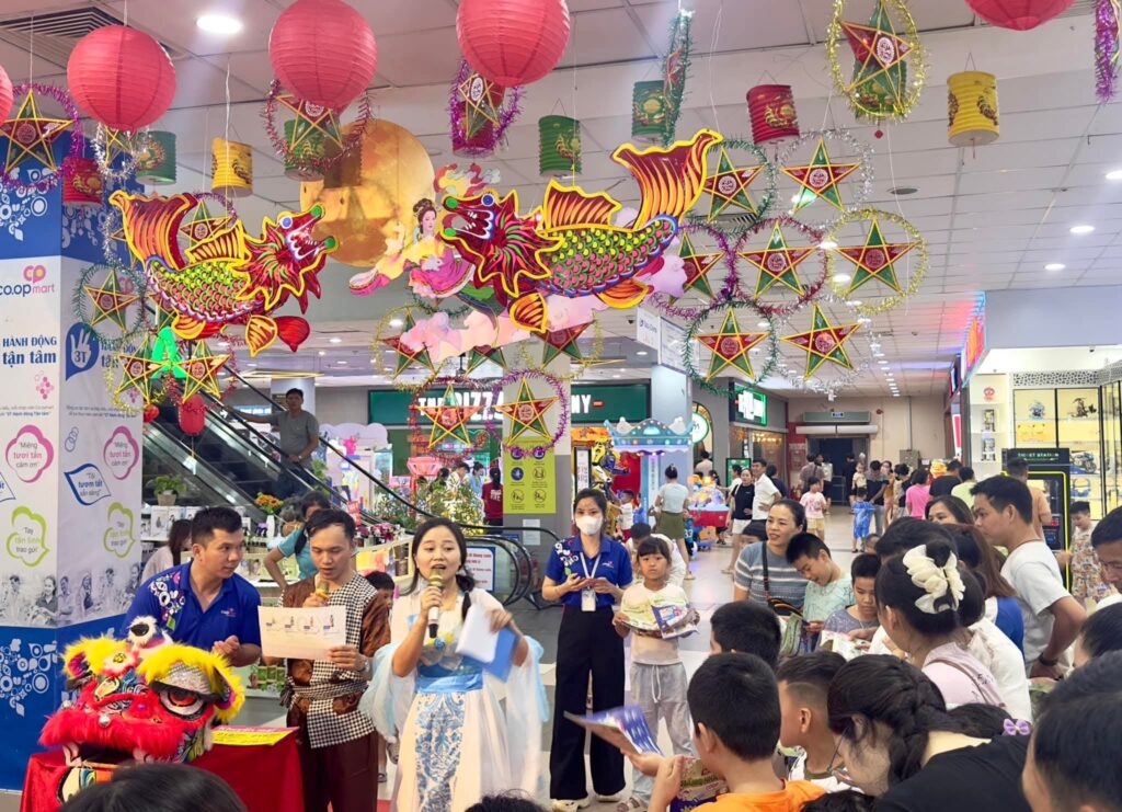 Trung thu năm nay, khắp các siêu thị trong hệ thống Saigon Co.op lại rộn ràng sắc màu và tiếng cười. Các Công đoàn đơn vị trực thuộc đã phối hợp tổ chức nhiều hoạt động vui tươi, ý nghĩa dành cho con CBNV và thiếu nhi khách hàng: làm lồng đèn, rước đèn, xem múa lân – ảo thuật, phá cỗ cùng chú Cuội, chị Hằng..