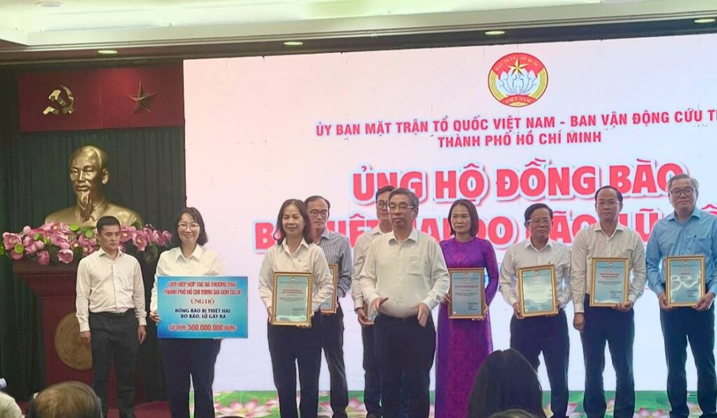 Sáng thứ Hai, ngày 6/10/2025, trong lễ chào cờ đầu tuần tại trụ sở 131 Điện Biên Phủ, Công đoàn Liên hiệp HTX Thương mại TP.HCM (Saigon Co.op) đã phát động đợt quyên góp ủng hộ đồng bào miền Bắc bị ảnh hưởng bởi bão lũ, thực hiện theo Công văn chỉ đạo của Đảng ủy Liên hiệp và hưởng ứng Thư kêu gọi của Ủy ban MTTQ Việt Nam TP.HCM.